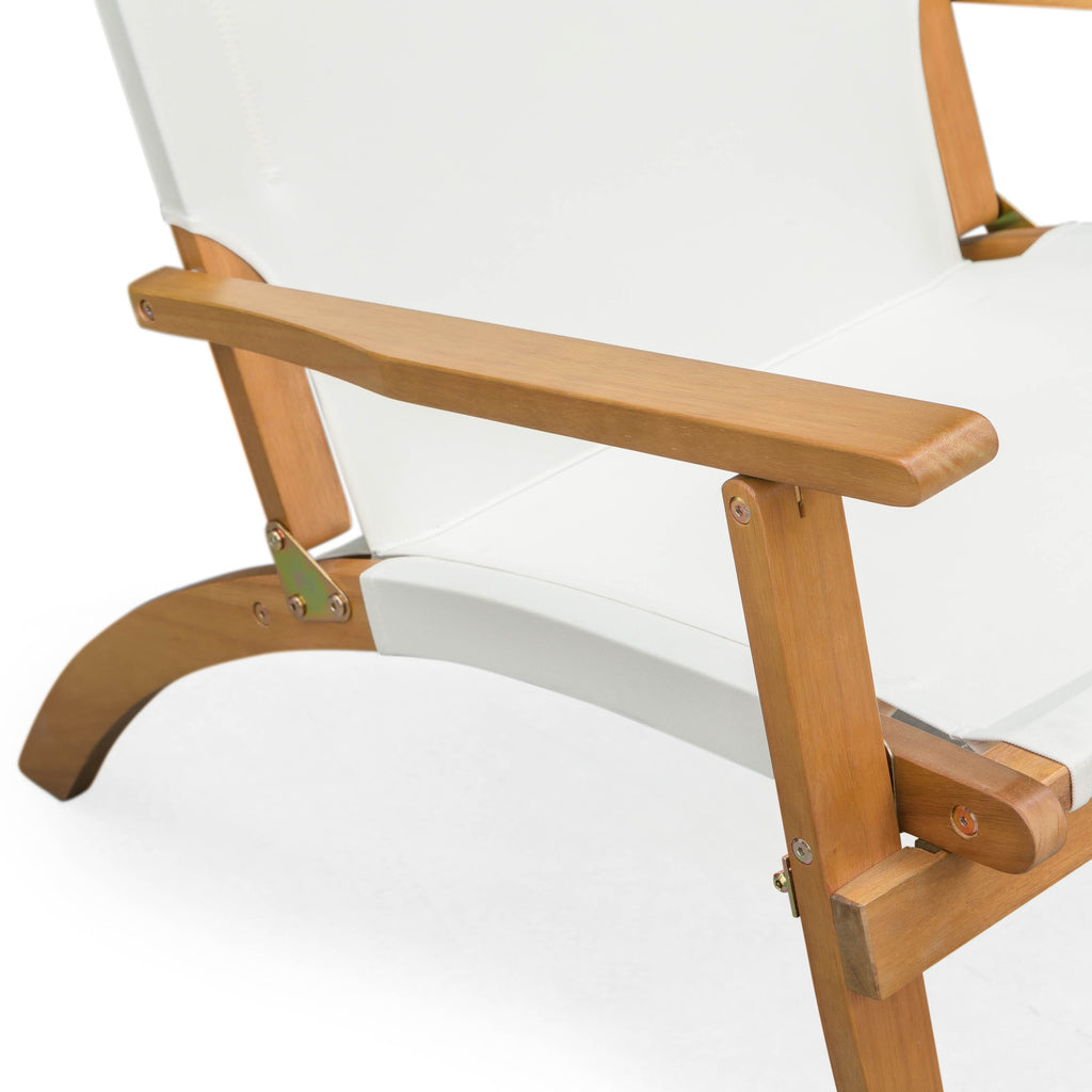 The Walker Folding Chair is a lounge-height, laid-back, portable seating option with a solid wood frame and a seat of quick-drying ivory outdoor fabric. The attractive teak-toned finish is the perfect accent for any patio or indoor living area, and also conveniently folds for storage or transport. The comfortable design is perfect for chatting poolside or creating a casual entertaining atmosphere. The Walker Chair can be used all season long with basic care, and may be easily stored away in the off-season thanks to its folding design.