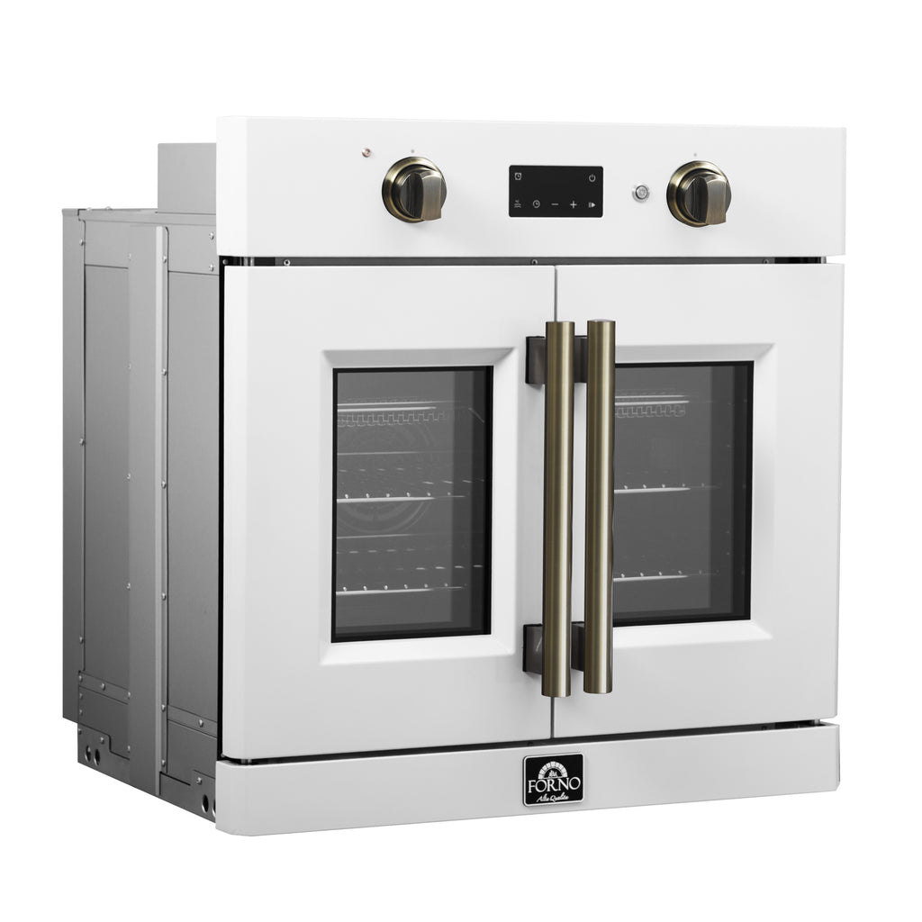 Forno Asti 30-Inch French Door Electric Wall Oven in White & Antique Brass, 3.68 cu. ft. True Convection, 3,600W, Air Fry, Sous Vide, Self-Clean