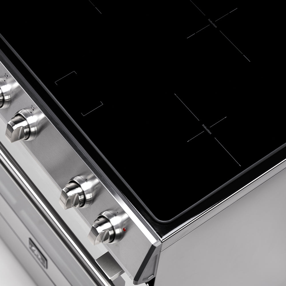 The Forno Leonardo Espresso 30" stainless steel induction range delivers powerful, energy-efficient cooking with a sleek, modern design. Featuring 8,100-watt induction elements, this range provides rapid, precise heating for faster cooking and consistent results. The spacious 5.0 cu. ft. convection oven, equipped with a high-performance fan and 3,500-watt broil and bake output, ensures even heat distribution for perfect baking and roasting. Its speckled blue enamel interior enhances heat retention, while two adjustable oven racks offer versatility for any meal. Built for durability and ease of use, friction-resistant hinges ensure smooth operation, and the hidden bake element simplifies cleaning by preventing spills from burning.