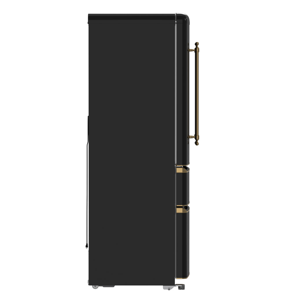 Transform your kitchen with the Forno Luigi 33" French Door Refrigerator, offering 18 cu.ft. of frost-free storage. With a sleek black finish and antique brass handles, this Energy Star Certified refrigerator combines vintage charm with modern function. The fridge features 12 cu.ft. of fresh food space, adjustable glass shelves and door bins, while the 6 cu.ft. freezer provides easy access and ample storage. Super Cool and Super Freeze functions lock in freshness, and bright LED lighting ensures visibility. The no-frost technology eliminates the hassle of maintenance, and the durable stainless steel back panel and antique brass-trimmed details complete the stylish design. A perfect blend of elegance, efficiency, and affordability.