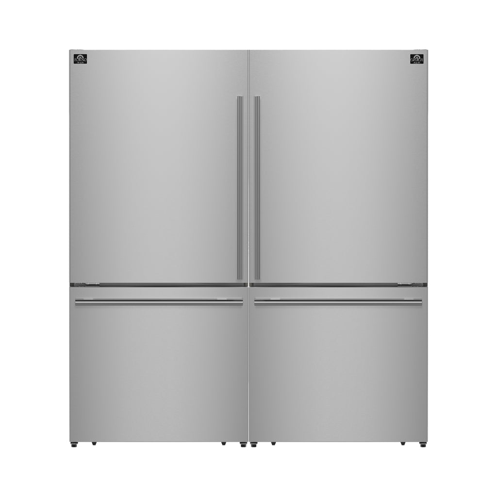 Forno Milano 2-Piece 62-Inch Freestanding Dual Bottom Freezer Refrigerator, Stainless Steel – 34.4 cu.ft, Touch Control, Ice Maker