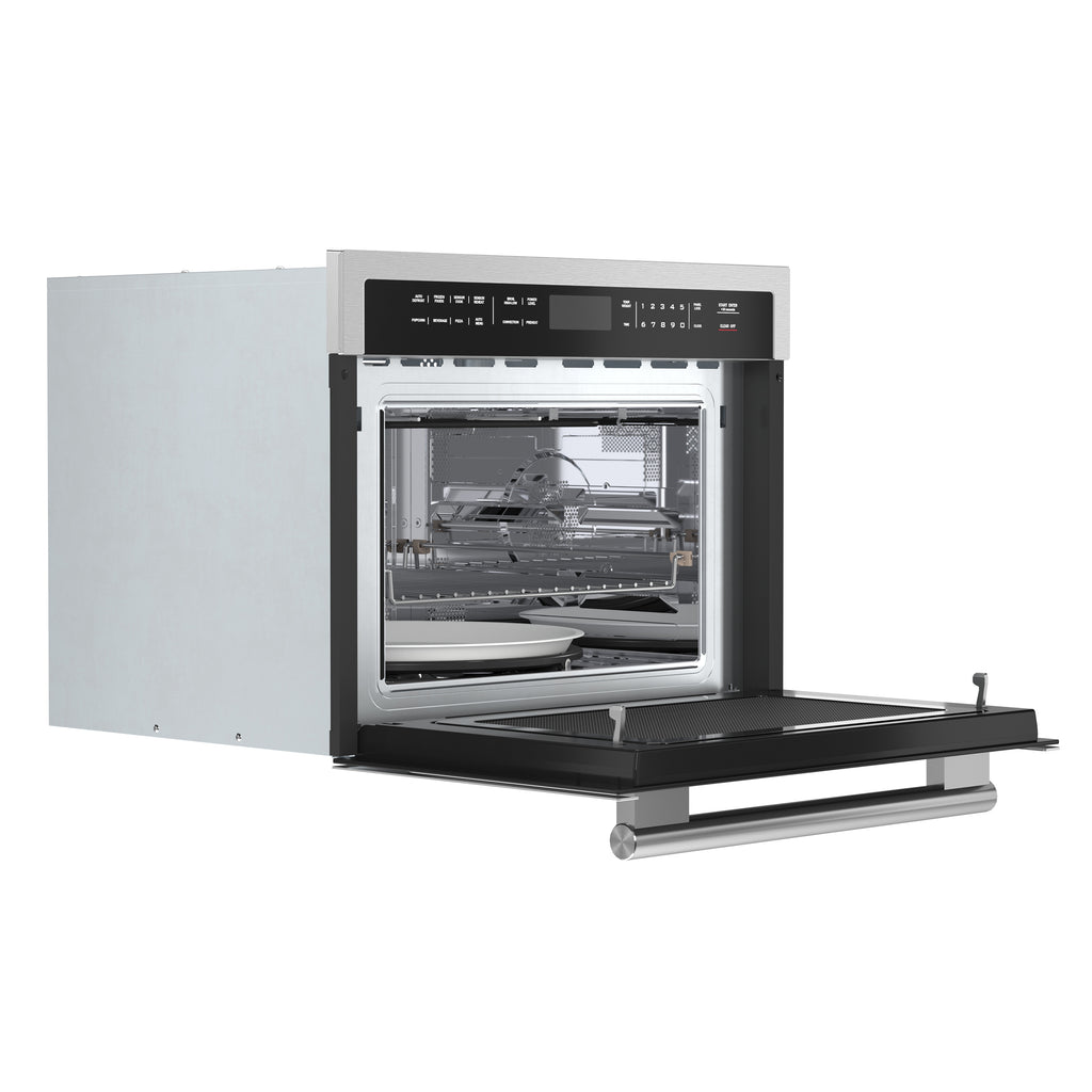 The Forno Oliena 24" Microwave & Convection Oven combines sleek design with versatile functionality, making it an essential addition to any modern kitchen. Its durable stainless-steel interior ensures easy cleaning, while intuitive glass touch controls and an LCD display provide effortless navigation. With 1,000 watts of microwave power, it heats food quickly, boiling water in just 1 minute and 50 seconds. Switch to convection mode for even cooking with 1,700 watts of true convection, or utilize the 1,750-watt broil and 600-watt bake functions for perfectly cooked meals without using your main oven. Sensor cooking, auto menu options, and specialized modes like defrost, popcorn, and beverage heating enhance convenience. The rapid preheat feature minimizes wait times, so your dishes are ready faster. Designed for performance and efficiency, this combination microwave oven elevates your cooking experience with precision and speed.
