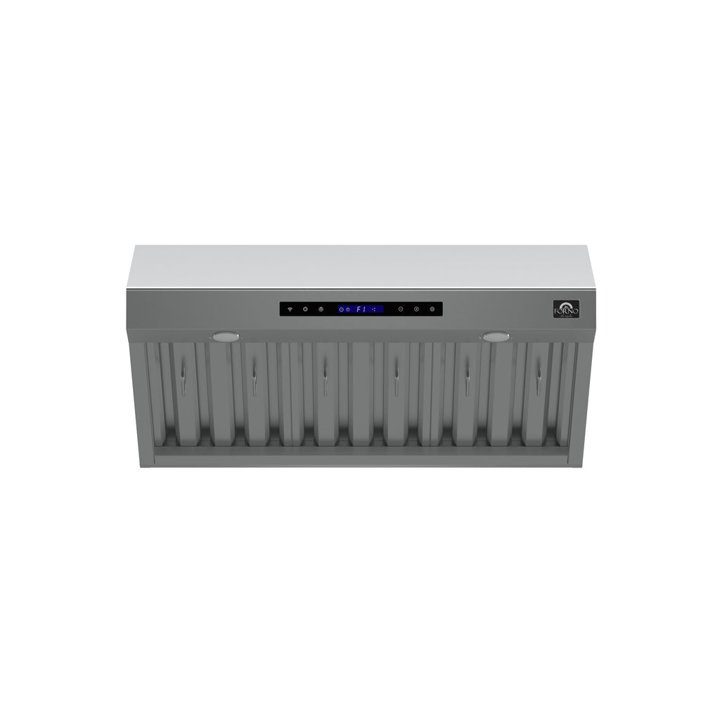 Upgrade your kitchen with the Forno 36" Wall-Mounted Range Hood, designed for powerful ventilation. With a 500 CFM single motor, it efficiently removes smoke, grease, and odors, ensuring a fresh cooking environment. The heavy-duty stainless-steel baffle filters trap grease effectively and are dishwasher-safe for easy cleaning. Featuring a 4-speed fan control, you can adjust the ventilation to suit different cooking needs, while the low-noise operation maintains a quiet kitchen atmosphere. Enjoy effortless control with touch and remote operation, allowing you to adjust settings from anywhere in the kitchen. Bright LED lighting enhances visibility over your cooktop while remaining energy-efficient. Built from durable stainless steel, this range hood resists heat and stains for long-lasting performance. The ducted ventilation system ensures efficient air expulsion, and the power-off delay function (1-15 minutes) continues venting even after cooking. This range hood offers versatile installation options, making it suitable for both wall-mounted and under-cabinet setups.