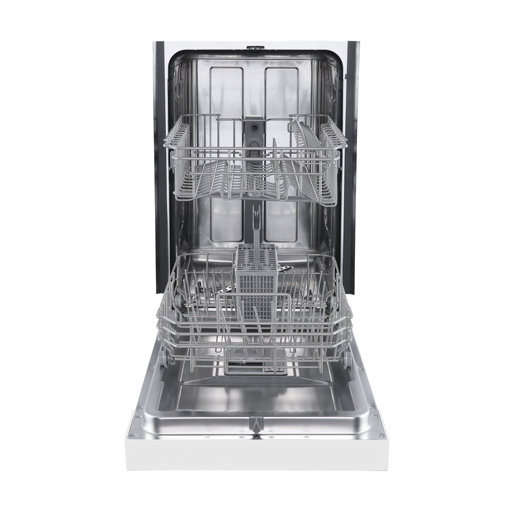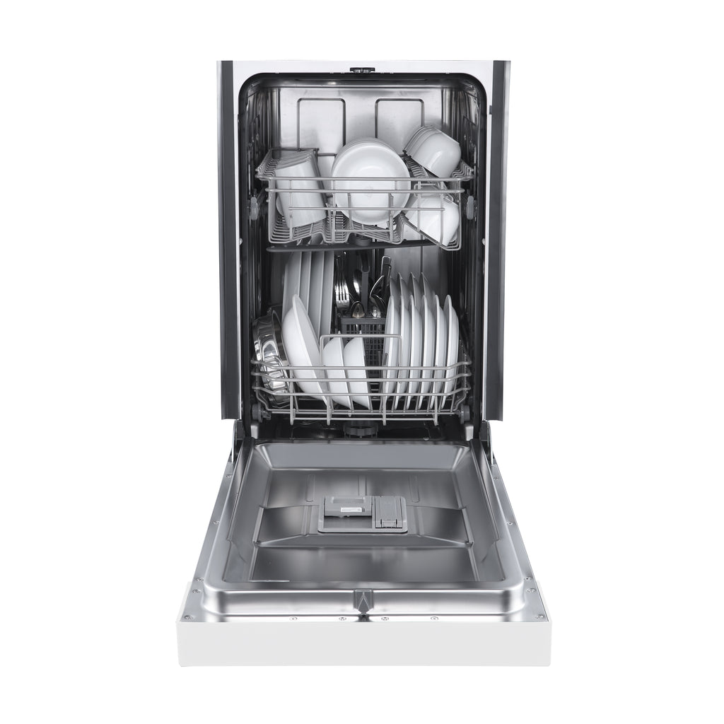 The Forno Polo 18" Dishwasher in white delivers powerful cleaning performance in a compact design, making it ideal for small kitchens, apartments, and tight spaces. Its sleek stainless steel finish adds a modern touch while ensuring durability and easy maintenance. With multiple wash cycles, including Heavy, Normal, and Quick Wash, this dishwasher adapts to your needs for a spotless clean every time. The adjustable top rack accommodates tall items up to 11 inches, while the dual spray arm system provides thorough, streak-free washing. Designed for efficiency, it is Energy Star Certified, helping reduce utility costs without compromising performance. Enjoy a quieter kitchen with ultra-low 52 dBA operation, and experience the convenience of a heated drying system that leaves dishes spotless and ready to use. With a user-friendly front control panel, a child lock safety feature, and an ADA-compliant design, the Polo combines compact convenience with premium functionality.