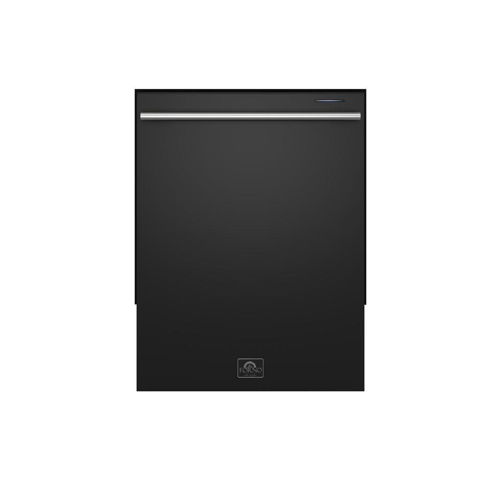 The Forno Pozzo 24" Dishwasher in black with antique brass handle delivers powerful cleaning performance with six wash programs to handle everything from delicate glassware to heavy-duty pots and pans. Operating at a quiet 49 dB, it ensures a peaceful kitchen environment while maintaining Energy Star Certification for efficiency and cost savings. Built with a robust stainless steel tall tub, this dishwasher offers enhanced durability and a sleek, modern aesthetic. The double drying system combines heat drying and fan drying for spotless, ready-to-use dishes. Enjoy effortless control with electronic touch controls, an LED display, and a front cycle progress indicator. The flexible 3-rack design, complete with a silverware basket and an adjustable upper third rack, maximizes loading capacity. Additional features include a 24-hour delay start for added convenience, an air exchange system that refreshes the interior every six hours, and low energy consumption of just 240 kWh per year, making it an eco-friendly and high-performance choice for any kitchen.