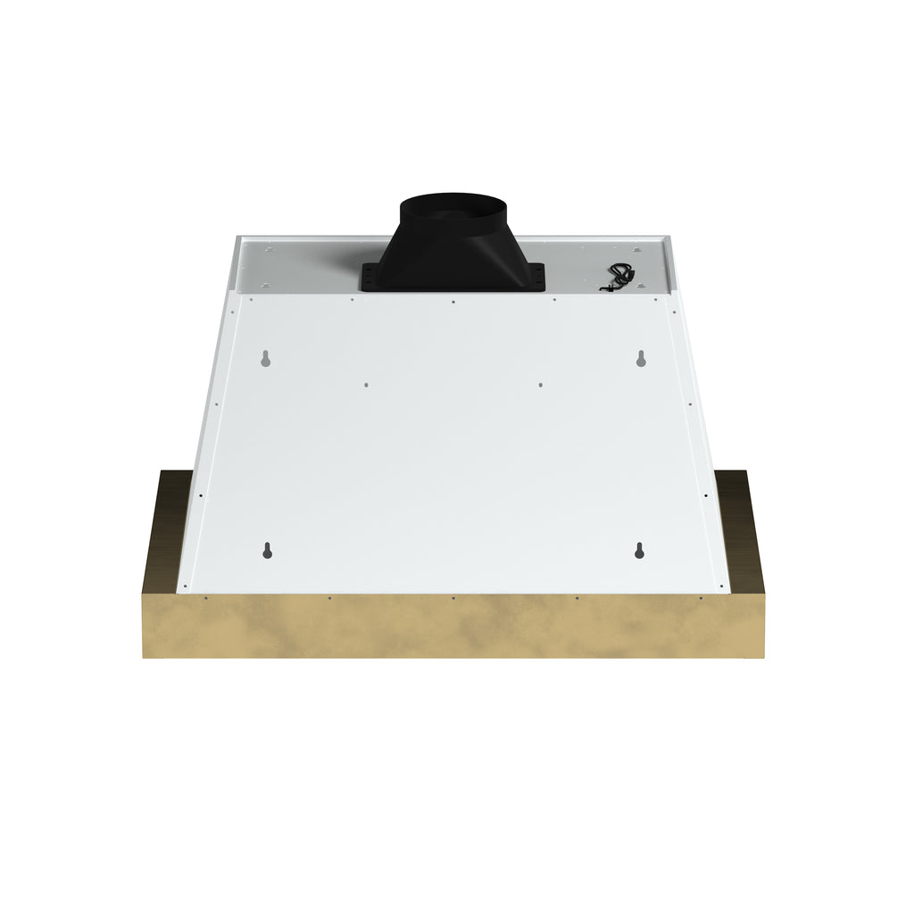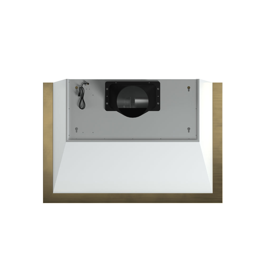 Designed for both style and performance, the Vittorio 36" Range Hood keeps your kitchen fresh with a 600 CFM motor that efficiently removes smoke, grease, and odors. The three-speed fan control adapts to various cooking needs, while dishwasher-safe baffle filters ensure easy maintenance. Enjoy seamless operation with touch and remote controls, and brighten your cooking space with energy-efficient LED lighting. Engineered for low-noise performance, it allows for a peaceful kitchen environment. With its sleek white finish and antique brass accents, the Vittorio brings vintage charm to any kitchen design. The versatile installation suits both wall-mounted and under-cabinet setups, while the 3-minute power-off delay ensures continuous ventilation even after cooking.