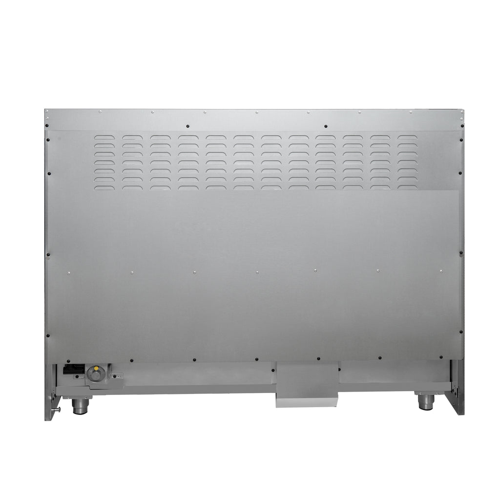 The Galiano 48" Dual Fuel Range blends professional style and performance in sleek black with antique brass accessories. Featuring eight sealed burners with a total output of 107,000 BTU, including a powerful 20,000 BTU dual-ring burner for boiling or searing, it gently simmers delicate foods, such as chocolate and sauces. The cast iron grates provide stability and smooth pan sliding, while the 6.58 cu. ft. electric oven delivers 9,700 watts of power, making it perfect for baking, roasting, and broiling with true convection options. Included are four oven racks, an LP conversion kit, and elegant zinc-coated metal knobs with bezel rings that retain their beauty.