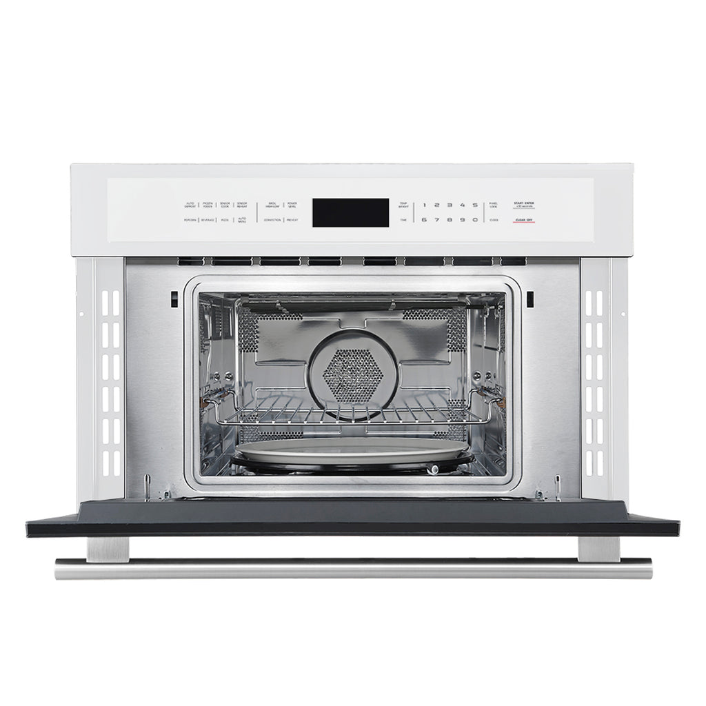 The Forno Oliena 30" Microwave & Convection Oven in white combines sleek design with versatile functionality, making it an essential addition to any modern kitchen. Its durable stainless steel interior ensures easy cleaning, while intuitive glass touch controls and an LCD display provide effortless navigation. With 1,000 watts of microwave power, it heats food quickly, boiling water in just 1 minute and 50 seconds. Switch to convection mode for even cooking with 1,700 watts of true convection, or utilize the 1,750-watt broil and 600-watt bake functions for perfectly cooked meals without using your main oven. Sensor cooking, auto menu options, and specialized modes like defrost, popcorn, and beverage heating enhance convenience. The rapid preheat feature minimizes wait times, so your dishes are ready faster. Designed for performance and efficiency, this combination microwave oven elevates your cooking experience with precision and speed.