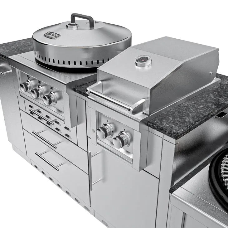 With premium stainless steel construction, versatile grilling and cooking options, ample storage, and built-in conveniences, this kitchen is designed for authentic Southern hospitality and unforgettable backyard feasts.